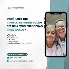 A Dra. Cristiane Pittelli oferece serviços especializados pensados para atender às necessidades de cada paciente, com flexibilidade e atenção integral. Entre as opções, destacam-se as teleconsultas, realizadas com ou sem vídeo, que proporcionam comodidade e praticidade para quem prefere o atendimento no conforto de casa. Outra alternativa é a visita domiciliar, ideal para pacientes com mobilidade reduzida ou que desejam um cuidado mais próximo e personalizado.
